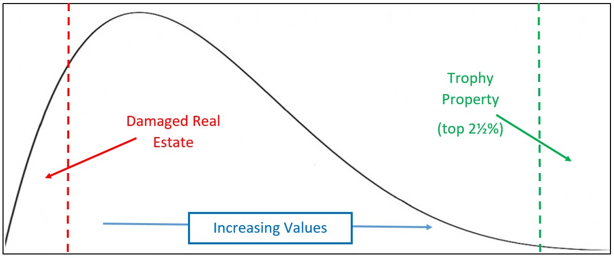 Trophy property is typically any property in the top 2.5% of its subclass. The market for such properties transcends normal markets for that subclass. Consider all of the office buildings in a given city — even New York or London. Investments in Class C and B offices may appeal to local buyers, while Class A properties will typically be marketed to trusts, REITs, pension plans, or the like. However, at the very top — the “named” properties which really anchor the city as a whole — the investment market may be entities or individuals for whom the trophy investment will provide halo effects or collectable effects for the rest of the portfolio. Normal metrics — income or cash/on/cash rates of return and such — may not apply to trophy investments. Much like a fine painting or other object d’art, an investor may want to own a trophy property simply for the sake of owning it. Of course, it doesn’t hurt that over long periods of time, trophy real estate has a great history of maintaining and improving value. It doesn’t hurt that trophy property investors often have very long time horizons, perhaps even multi-generational.