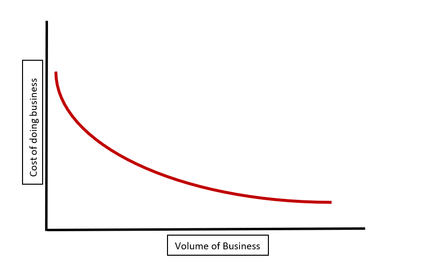 In MBA school, students learn about economies of scale. The concept is pretty simple — the more of something you do, the more you can flatting out overhead. Let’s put this in the most basic terms. Joe owns a small plumbing company. He has to buy a truck and tools and a supply of plumbing gadgets. If he only services one customer a day, he may barely break even. However, if he can service 10 customers per day, he might be able to hire a cheap apprentice and make a lot of money. Economies of scale. Get it?