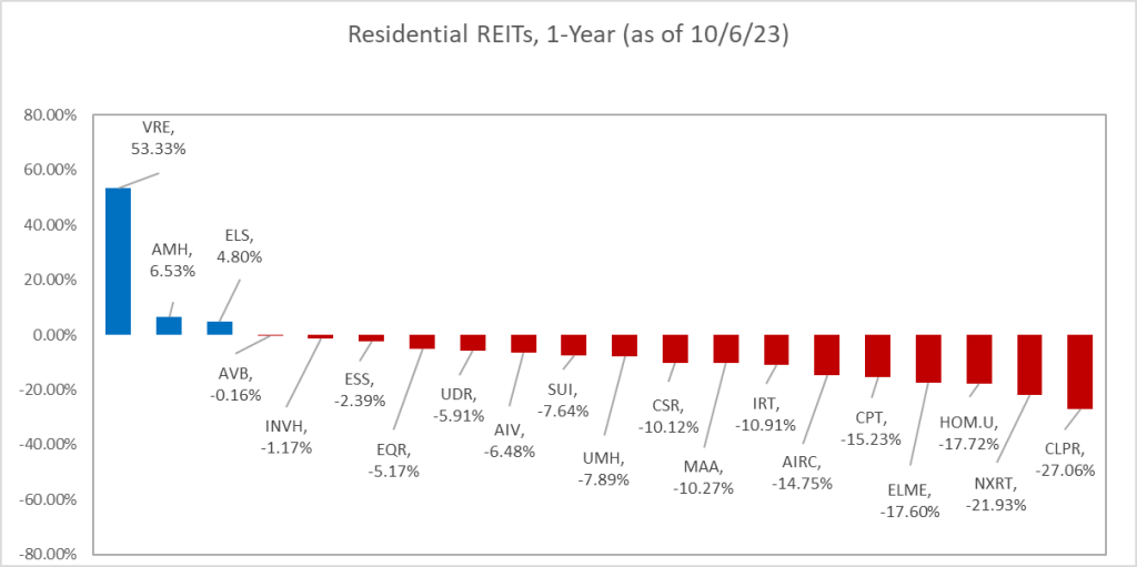 The Residential REIT sector generally spans three subsectors – apartments, single-family detached rental communities, and “lifestyle” REITs which invest in manufactured housing, RV parks, and marinas. The thee subsectors have been driven by similar forces over the past years. First, there is an organic demand for new rental housing as population growth drives household formation. The market for single family rental homes was particularly hot during the pandemic, and those REITs saw dramatic run-ups followed by a tough period failing to meet investor expectations.