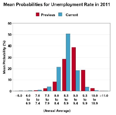 Unemployment projections for 2011 are somewhat rosier. In the prior survey, the mean projection was in the range of 9.0% to 9.4%, with a significant number of economists projecting from 9.5% to 9.9%. Currently, the mean is 8.5% to 8.9%, and a signficant number project in the 8.0% to 8.4% range — a very real shift in the outlook for the nation’s economy as we head into the second half of the year. On the downside — projections for out-years (2012, 2013, and 2014) show a very slow restoration of “normality”, with mean unemployment projections above 7% in all years.